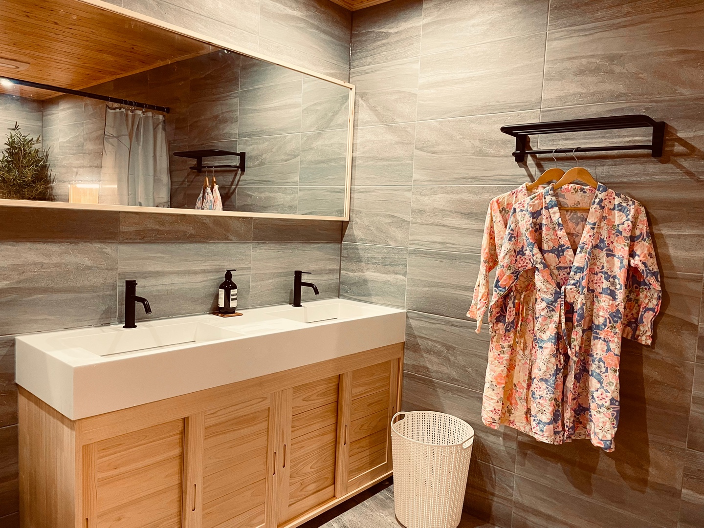 편안하게 즐길 수 있는 커다란 히노끼 욕조로 오롯이 힐링을 위한 공간을 완성했어요.